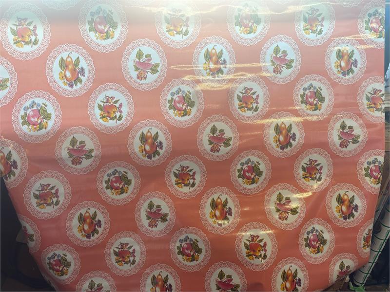 Doily with Fruit on Salmon Oil Cloth, Yardage |