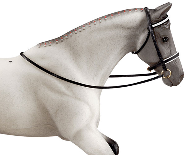 Black bridle accented by white on noseband and browband. Horse not included. For Traditional Sized Breyer Model Horses.