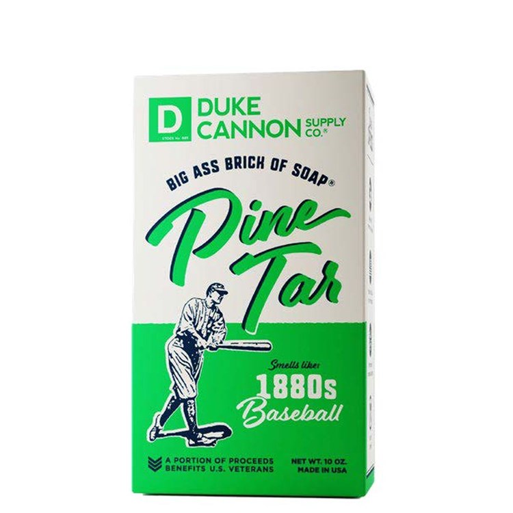 With little refrigeration and poor sewage infrastructure, America in the late 1800's simply did not smell very good. That's why hardworking folks would flock to their local baseball diamond, where the distinctly rugged aromas of tobacco, whiskey, and pine tar filled the air. Duke Cannon's Pine Tar Big Ass Brick of Soap captures the scent of a magical, bygone era when pitchers threw for 9 innings and batsmen went 6for6 after four pulls of whiskey in the dugout.