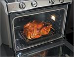 A 4.0 cu. ft. true convection oven offers the space and capacity you need. Convenient self-cleaning feature (with delayed start) is standard. Dual halogen lights with over-ride let you see what’s cooking with the door open or closed. The true convection oven has a third heating element surrounding the convection fan. Hot air circulates evenly, providing speed and consistent professional results.