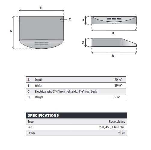 Elmira Stove Works 30" Recirculating Range Hood, Tropical Blue #1961