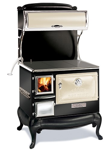 Embracing the pioneering spirit, the Fireview Collection blends the simplicity of form and function with authentic nineteenth-century styling. The Fireview woodburning cookstove is a master of many trades—stovetop cooking, oven baking, warming your home… even heating your household water with its optional water jacket. Features include a fire viewing window, overhead warmer, optional side warmer, and optional side gas burners.