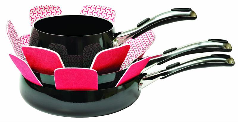 The Envision Home Cookware Guards prevent pots, pans, bakers, and serving bowls from scratching and chipping when stored nested
