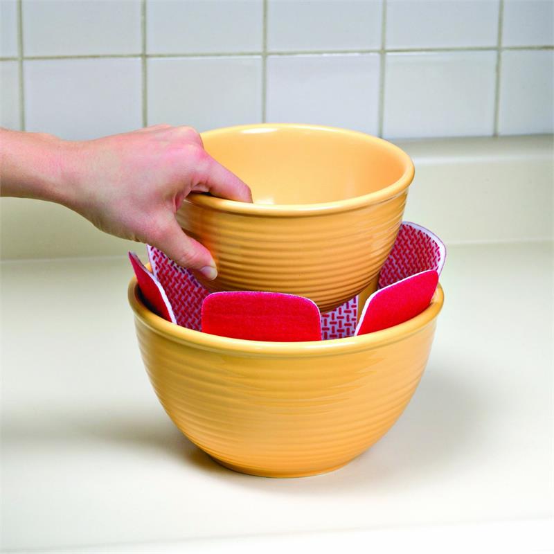 Place appropriately sized Cookware Guard inside clean cookware, glassware, or serve ware. Nest smaller article on top to prevent