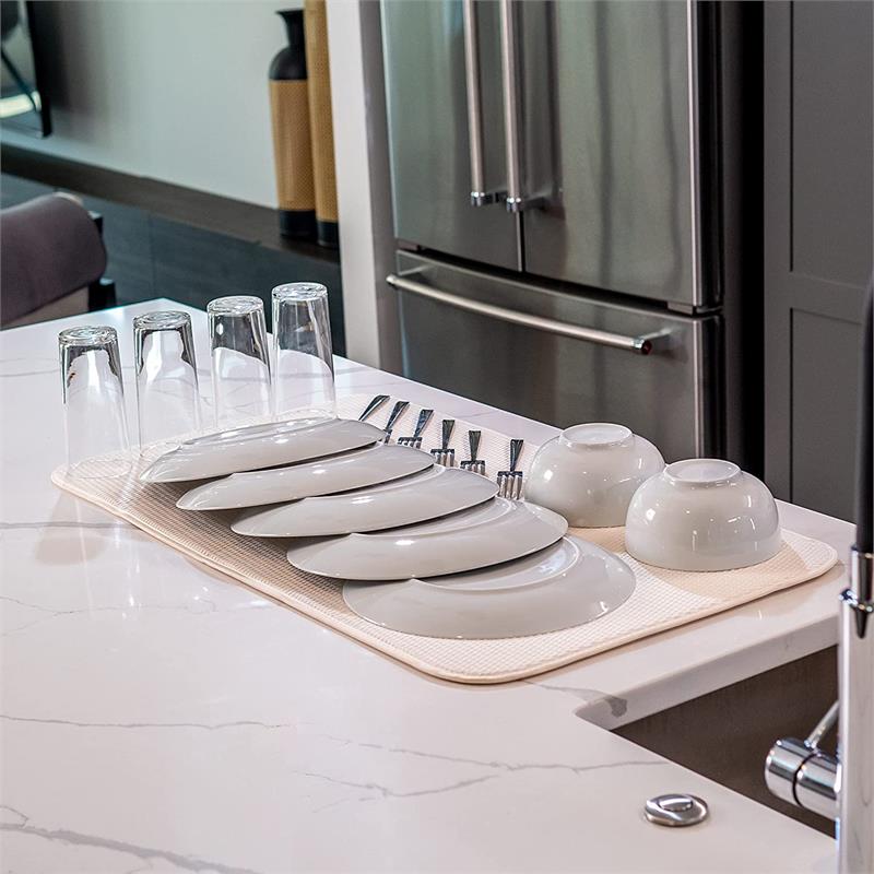 The Envision Home Jumbo Dish Drying Mat is the new solution to the age old tradition of placing dish towels on the counter when hand