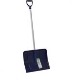 Snow shovel/pusher combo. Poly blade measures 18" x 12" with galvanized metal wear strip. Handle is 1-1/8" diameter with steel core and ribbed grip handle. 51" overall length.