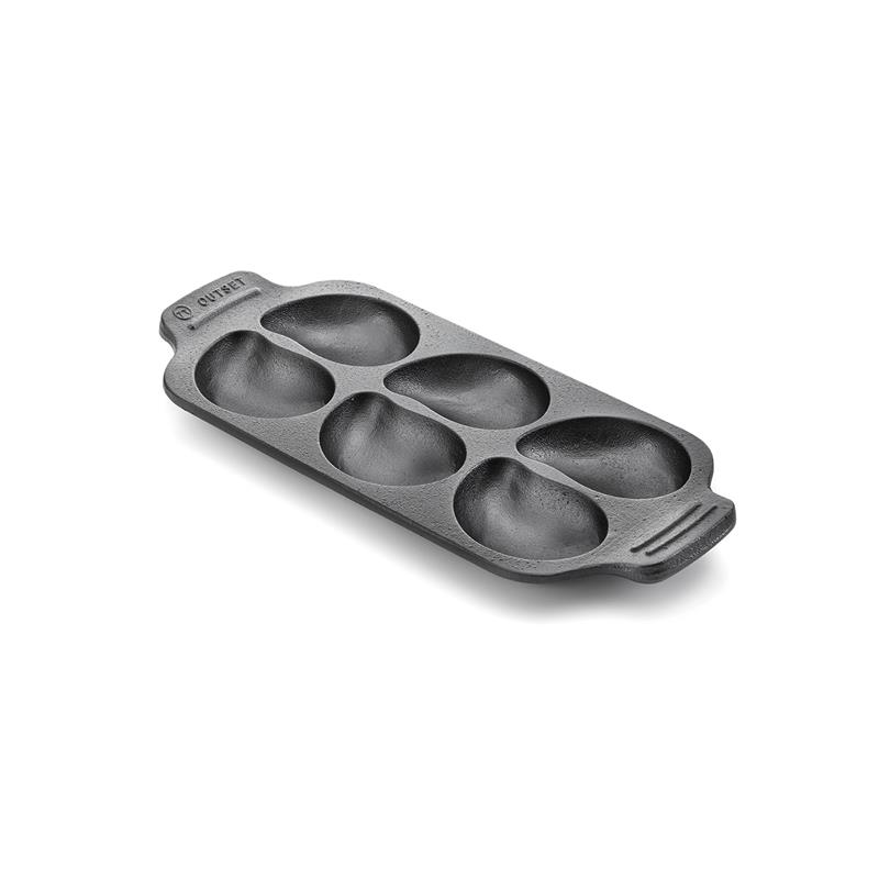 Grill up 6 oysters on the half shell or shucked. This cast iron pan can also be used to cook corn bread, drop biscuits, single serving mac ‘n’ cheese and more. Solid cast iron construction. Imported.