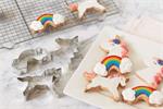 Fun-to-decorate Unicorn and Rainbow-themed designs featuring Unicorn head, Unicorn and rainbow with clouds for magical, mythical, fantasy-filled treats!