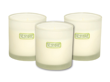 The entire Fresh Wave line features our proprietary blend of natural extracts. This combination of lime, pine needle, aniseed, clove and cedar wood safely eliminates malodors without adding a masking fragrance or harsh chemical to your environment. Candles are the most effective way of dispensing this special odor neutralizing formula. So for active families who love to cook at home with creative ingredients, have pets or children, its the best product for eliminating odors. A perfect gift for any gourmet cook, the Fresh Wave Kitchen Candle is as beautiful as it is effective. To keep odors from fish, onions, garlic, curry and any pungent ingredient from lingering after your meal simply burn the candle during preparation and again after eating. The 7 oz. ecru candle comes in a frosted glass that blends with any decor. Plus it will look beautiful (and be effective) anywhere you may need strong odor neutralizing: in the bathroom, your workout room, a guest room, or the library.