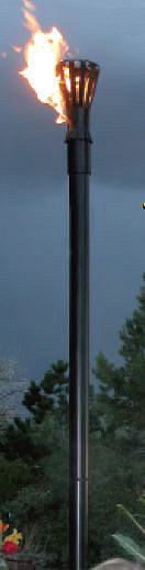 Gas Light Style Head Head Dimensions: 19 Tall x 9 Diameter NOTE: We strongly recommend Professional Installation of all Permanent Mount Patio Lights. Available as Portable or Permanent Mount. If ordering this unit as a replacement for your existing torch setup, please be prepared to provide your SERIAL NUMBER and verify it was manufactured by FLAME ENGINEERING. We do not sell these parts as substitutes for any other manufacturers products. Stands a total of 90 1/2" PATIO LIGHT SPECIFICATIONS:LP Gas Usage (11 wc) Natural Gas Usage (6.5 oz)@49,000 BTU (max) .5 gal./hr. @49,000 BTU (max) 49 cu. ft./hr.@18,000 BTU (min) .2 gal./hr. @18,000 BTU (min) 18 cu. ft./hr.Patio Light Head Clearance Requirements3 Feet Radius 6 Feet HeightPatio Light Pole DimensionsAll Poles are 21/2 in Diameter Portable Poles Approx. 733/4 TallPermanent Poles Approx. 821/4 TallPermanent Patio Light Pressure Requiremetsat the Base of the LightLP Gas - 11 wc Natural Gas - 6.5 oz