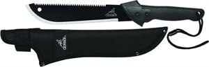 The Gator Machete wields a 15” fine edge blade on 1 side, a 15” high performance saw blade on the other. Made in Switzerland.