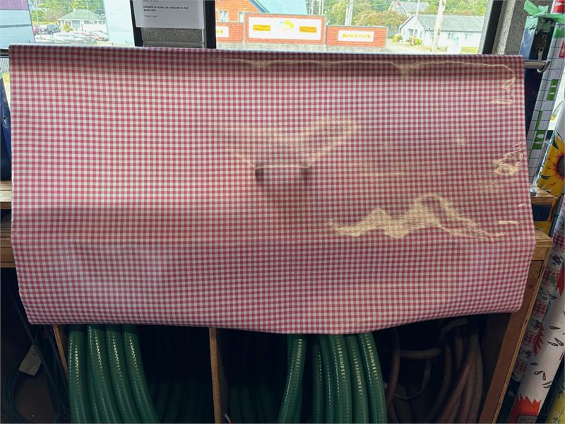 Gingham Red Oil Cloth. Sold by the Yard. Oilcloth yardage in classic Americana gingham checks. It doesn't get more traditional than this. We stock multiple colors to match your decor. Each individual check is about 1cm in diameter.