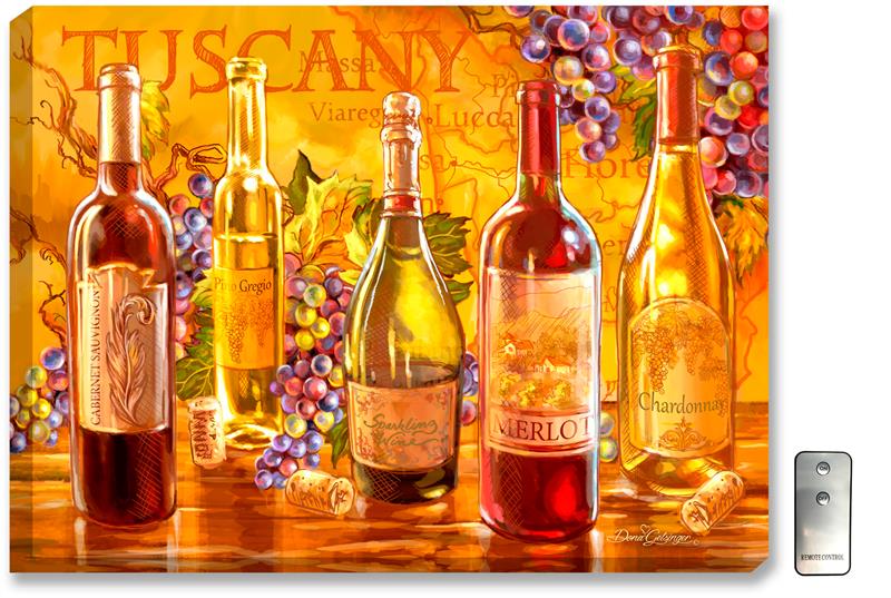 Glow Decor Tuscan Bottles Illuminated Wall Art #D1510 by Dona Gelsinger