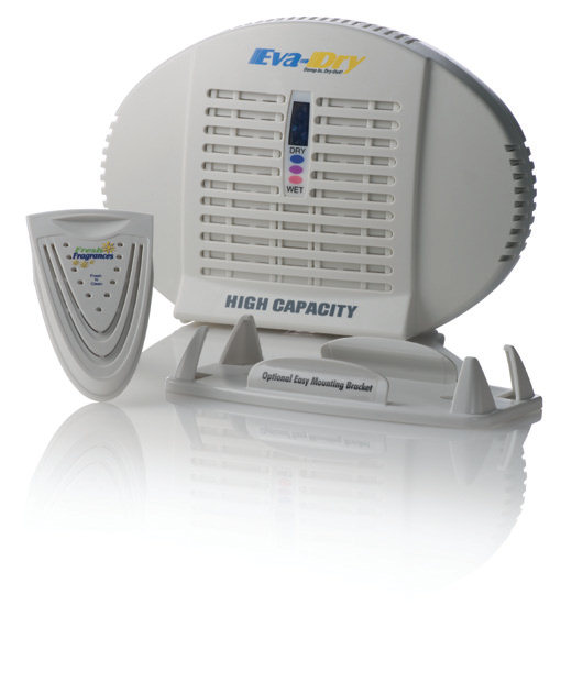 The EH-500F Fresh Fragrances is an ideal way to dehumidify and freshen small spaces such as closets, cabinets, bathrooms, RV's, boats and more. Rid spaces of moisture and mildew, replacing them with a fresh and invigorating fragrance that lasts and lasts. The EH-500F offers a mounting bracket as well as two Fresh-Fragrance packs.The E-500F eliminates odors through individual fragrance packs and has moisture-fighting powers, all in one unit. This eco-friendly dehumidifier has the same features as the Eva-Dry E-500 with the addition of individual fragrance packs, which insert into the back of the unit. Also included with the E-500F is an easy-mount bracket for discreet installation, two fragrance inserts and the unit lasts 30-60 days before renewing. Special features of the E-500F includes: the unit works in areas up to 500 cubic feet, requires no batteries or cords for use, is 100% renewable, works up to ten years, is compact/silent, always spill and mess free and is non-toxic, child and pet safe! The unit measures 8" L, 3 1/8" W, 5 5/8"H.