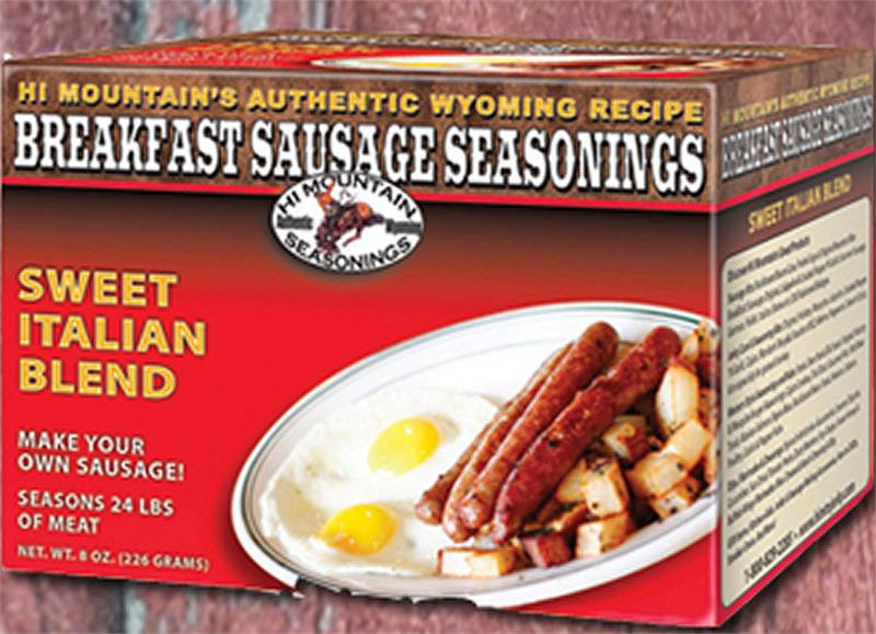 Hi Mountain Jerky's Sweet Italian Blend Breakfast Sausage seasoning is a delicious blend that gives breakfast an italian flair. Designed to mix with ground pork, or a combination of pork and beef or wild game. Each Hi Mountain Jerky Sweet Italian Breakfast Sausage Seasoning kit seasons 22 lbs of meat, one lb at a time if you choose.