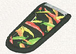 For the ultimate in cooking comfort we recommend Lodge's two piece set of silicone lined Handle Holders. Brightly colored green, yellow, red, and orange hot chili pepper design on black background. Protects your hands to temperatures up to 350 degrees Fahrenheit. This set includes two bright and colorful Multi-Colored Chili Pepper designed hot handle mitts.