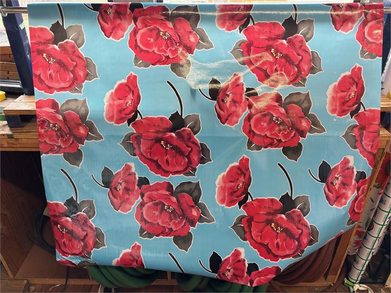 Iceland on Blue Oil Cloth, YardageOilcloth has been around for over a century and when it comes to making a bold color statement anywhere in your home. Oilcloth is a long-lasting, sturdy product that comes in vibrant colors. The oilcloth of yesteryear was resin-coated vinyl and the finish sometimes cracked or flaked. The new version is made of hi-tech plastic that won't crack but has the same colorful shine. Oilcloth has a mesh backing, which means it can really hold a stitch. It can be used for anything that needs to be durable and colorful--tablecloths, upholstered dining room chairs, curtains, bibs, lampshades, tissue boxes, outdoor chairs, etc. Your only limited by your imagination! Oil Cloth measures 48" wide & a full bolt equals 12 continuous yards (36 feet) Don't see the pattern or color you want? Please let us know and we will order it for you!