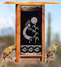 The Teahouse collection of bird feeders are made of redwood and double etched glass panels. The design is beautiful and functional; the top slides up for easy to refilling, the unique design protects the seeds from the elements. Lower perch is removable for easy cleaning. This item proudly made in the U.S.A.