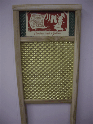 Cleanliness is next to Godliness according to this washoard. Our pail size washboard with teak wood frame features