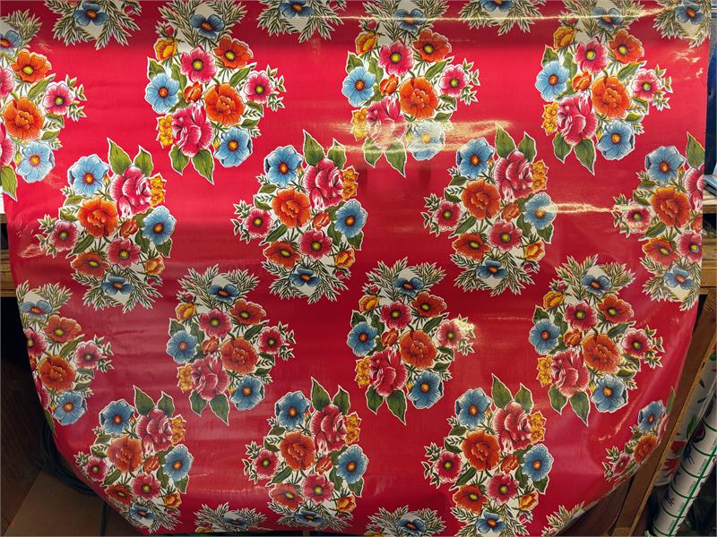 Lady Bird on Red Oil Cloth, YardageOilcloth has been around for over a century and when it comes to making a bold color statement anywhere in your home. Oilcloth is a long-lasting, sturdy product that comes in vibrant colors. The oilcloth of yesteryear was resin-coated vinyl and the finish sometimes cracked or flaked. The new version is made of hi-tech plastic that won't crack but has the same colorful shine. Oilcloth has a mesh backing, which means it can really hold a stitch. It can be used for anything that needs to be durable and colorful--tablecloths, upholstered dining room chairs, curtains, bibs, lampshades, tissue boxes, outdoor chairs, etc. Your only limited by your imagination! Oil Cloth measures 48" wide & a full bolt equals 12 continuous yards (36 feet) Don't see the pattern or color you want? Please let us know and we will order it for you!