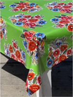 Lady Bird on Lime Green Oil Cloth. Sold by the Yard. Oilcloth yardage in a bouquet of dazzling wildflowers. This outrageously charming print is named after the Lady Bird Wildflower Center in Texas. Keep the ambiance fresh and floral in your home.