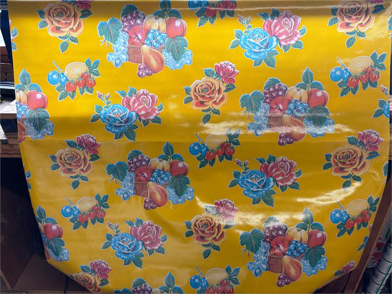 Lemons on Yellow Oil Cloth, Full Bolt Oilcloth has been around for over a century and when it comes to making a bold color statement anywhere in your home. Oilcloth is a long-lasting, sturdy product that comes in vibrant colors. The oilcloth of yesteryear was resin-coated vinyl and the finish sometimes cracked or flaked. The new version is made of hi-tech plastic that won't crack but has the same colorful shine. Oilcloth has a mesh backing, which means it can really hold a stitch. It can be used for anything that needs to be durable and colorful--tablecloths, upholstered dining room chairs, curtains, bibs, lampshades, tissue boxes, outdoor chairs, etc. Your only limited by your imagination! Oil Cloth measures 48" wide & a full bolt equals 12 continuous yards (36 feet) Don't see the pattern or color you want? Please let us know and we will order it for you!