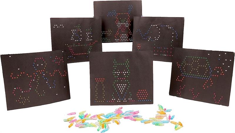 Lite-Brite is back & still the most creative way to create art with light! These refill packs are to be used with the Lite-Brite main unit (sold separately).Fun, inspiring, creative, educational – promotes imagination & hand and eye coordinationIncludes 8 templates (size: 8” wide x 6.75” high) in different art designs than what is included with the main units: Clever Owl, Silly Kitty, Rugged Pup, Swimmer Turtle, Fun Elephant, School of Fish, Don’t Rock the Boat, and Wild Octopus. Templates are reuseable and include letters of the colored peg to be inserted.Includes 100 pegs in 6 colors: 20 clear, 16 orange, 16 pink, 16 green, 16 blue, 16 yellow. Pegs are round and shiny and measure 7/8 of an inch. For use with Basic Fun’s Lite-Brite (see photos for units this is compatible with) Manufacturer recommended age:4 - 15 years.