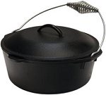 Lodge Cast Iron 5 Quart Dutch Oven with Bail Handle #L8DO3 Pre-Seasoned American Made Cast Iron CookwareThe Lodge Cast Iron Dutch Oven is a multi-functional cookware that works wonders with slow-cooking recipes. It comes with a tight-fitting lid that helps lock in nutrition and flavor. This pre-seasoned Dutch Oven works like a charm right out of the box. Made of cast iron, this Dutch Oven evenly distributes heat from the bottom through the sidewalls. Also, it retains heat better so your delicious meal remains warm for a long time. Sporting a stylish black color, the cast iron Dutch Oven looks good in most kitchens and it doubles up as an excellent source of nutritional iron. It features loop handles for convenient handling and the oven is easy to clean and maintain. A simple Cast-Iron Dutch Oven, like the one your grandmother used, still ranks as one of the best cooking utensils ever made. It gives you a nearly non-stick surface, without the possible harmful fumes generated by preheating chemically treated nonstick cookware. The Lodge Traditional Dutch Oven with Wire Bail handle has been popular for over a century, and is perfect for camp and hearth cooking. The L8DO3 features a 5 quart capacity, 10 1/4" diameter, 4" depth. Weight is 13 pounds. Lodge Dutch Ovens deliver superior cooking performance, garnering Cook’s Illustrated’s “Best Buy Award.” The original slow cooker, Cast Iron Dutch Ovens have been a kitchen staple in American homes for centuries. Every Lodge Dutch Oven comes complete with matching lid. Use this dutch oven on all cooking surfaces, grills, and campfires. It's also oven safe. All of Lodge Cast Iron is foundry seasoned, meaning that it's ready to use upon purchase. About Lodge Manufacturing, the largest USA based Cast Iron Cookware maker: