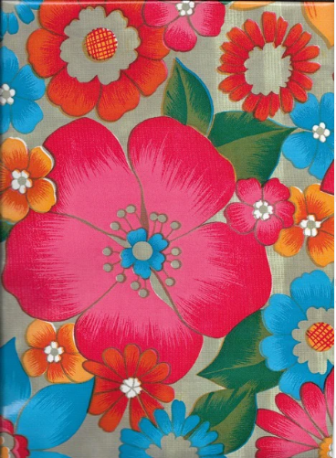 London on Navy Oil Cloth. Sold by the Yard. Oilcloth yardage that brings to mind the Swingin' 70's in London. Groovy, baby! Great big flowers popping and bright colors inspired by Carnaby Street. Keep the good vibes alive with this vibrant print.