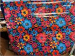 London on Light Blue Oil Cloth. Sold by the Yard. Oilcloth yardage that brings to mind the Swingin' 70's in London. Groovy, baby! Great big flowers popping and bright colors inspired by Carnaby Street. Keep the good vibes alive with this vibrant print.