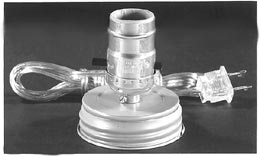 Heavy duty zinc Mason "Fruit Jar" adapter is made with a U.L. listed, zinc color push-thru socket and 6 ft. U.L. listed cord set. 2 3/4" diameter lamp collar fits old and new Mason and canning jars. Cord is clear with gold center. For use with 60 watt light bulb