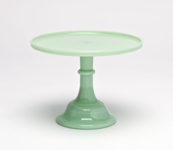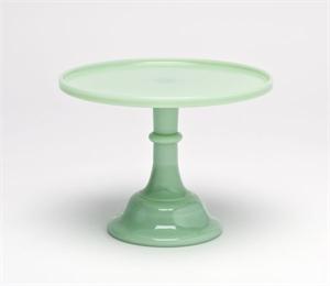 Mosser Glass Traditional Style Jadeite Green Cake PlateAvailable in 4 sizes, please use our pull-down menu to make your selection. Mosser Glass Cake Stands offer elegant presentation for your special event, or to show off your cake baking skills. Mosser's Traditional style glass cake stands can be used for more than just cake. Cupcakes, appetizers, cut flowers, and party favors also look fancy when put on a glass cake stand. Our cake stands are stackable as well for beautiful arrangements. Jadeite Glass, also know and Fire King Jade-Ite, is a Jade Green color of opaque milk glass. Popular during the Depression Era, Mosser Glass offers Jadeite Green with today's quality. Jadeite Green is a beautiful color in any kitchen, wedding, or party setting. The craftsmen at Mosser Glass have been producing quality American Made Glassware since the 1950s. Mosser Glass produces high quality glassware made with fine craftsmanship. Each piece of Mosser Glass is hand blown and hand finished. Many pieces are made to order. Please allow 1-2 weeks for delivery. Proudly Made in the U.S.A.