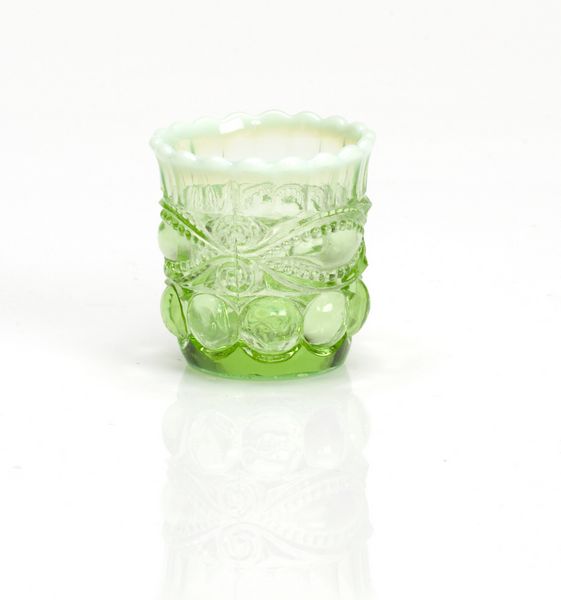 Mosser Glass Green Opal Eye Winker Toothpick Holder #409TPGOMosser's Eye Winker pattern comes from the Victorian Era of fancy patterned glassware, and is popular today as well. The Eye Winker gets is name due to the oval or eye shaped design in the lower portion of the glassware. The upper portion of the Eye Winker design features vertical ribs. Mosser's Eye Winker Toothpick Holder keeps wooden toothpicks within reach for your guests. Fan out toothpicks for easy grabbing. Keeping toothpicks handy for appetizers or bite-size desserts is done in style with our Eye Winker Toothpick holder. Our toothpick holder can also be used as a place setting for guests, or use as a small simple flower vases. The Eye Winker toothpick holder measures 2" deep x 2.25" high. Mosser's Green Opal glass is simple elegant. Green Opal transitions from a translucent green glass that finishes off into a opalescent Opal or Milk glass color. A stunning combination. The craftsmen at Mosser Glass have been producing quality American Made Glassware since the 1950s. Mosser Glass produces high quality glassware made with fine craftsmanship. Each piece of Mosser Glass is hand blown and hand finished. Many pieces are made to order. Please allow 1-2 weeks for delivery. Proudly Made in the U.S.A.