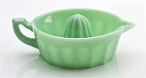 Mosser Glass Jadeite Juice Reamer #246JMosser's glass Juice Reamer allows you to easily juice lemons, oranges, or grapefruit while collecting all of the juices. The juice reamer features tall sides, a pour spout and handle for easy draining. No kitchen would be complete without a handy juice reamer. Our American made reamer is designed to offer years of service. Jadeite Glass, also know and Fire King Jade-Ite, is a Jade Green color of opaque milk glass. Popular during the Depression Era, Mosser Glass offers Jadeite Green with today's quality. Jadeite Green is a beautiful color in any kitchen, wedding, or party setting. The craftsmen at Mosser Glass have been producing quality American Made Glassware since the 1950s. Mosser Glass produces high quality glassware made with fine craftsmanship. Each piece of Mosser Glass is hand blown and hand finished. Many pieces are made to order. Please allow 1-2 weeks for delivery. Proudly Made in the U.S.A.