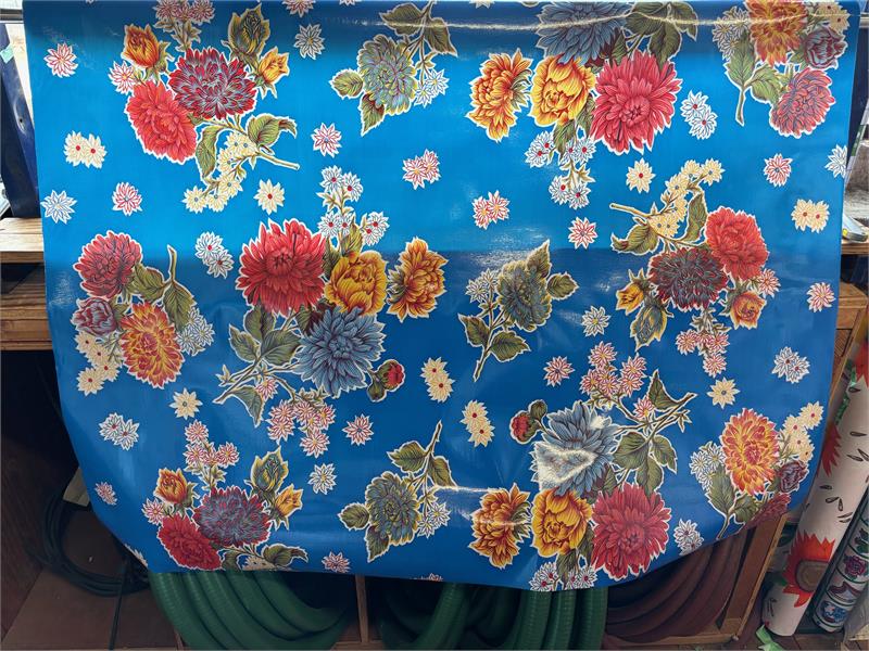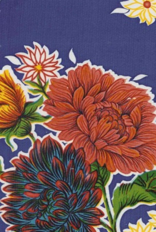 Mums on Blue Oil Cloth, Yardage