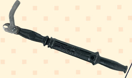 Consists of hammer handle, long and short jaw. Box joint keeps jaws in perfect alignment. Black enamel finish. Blue body and hand-hold. Polished jaws. Similar to the Crescent Model 56.