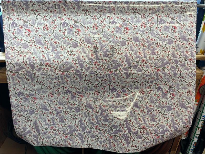 Fuji on Lilac Purple Oil Cloth, YardageOilcloth has been around for over a century and when it comes to making a bold color statement anywhere in your home. Oilcloth is a long-lasting, sturdy product that comes in vibrant colors. The oilcloth of yesteryear was resin-coated vinyl and the finish sometimes cracked or flaked. The new version is made of hi-tech plastic that won't crack but has the same colorful shine. Oilcloth has a mesh backing, which means it can really hold a stitch. It can be used for anything that needs to be durable and colorful--tablecloths, upholstered dining room chairs, curtains, bibs, lampshades, tissue boxes, outdoor chairs, etc. Your only limited by your imagination! Oil Cloth measures 48" wide & a full bolt equals 12 continuous yards (36 feet) Don't see the pattern or color you want? Please let us know and we will order it for you!
