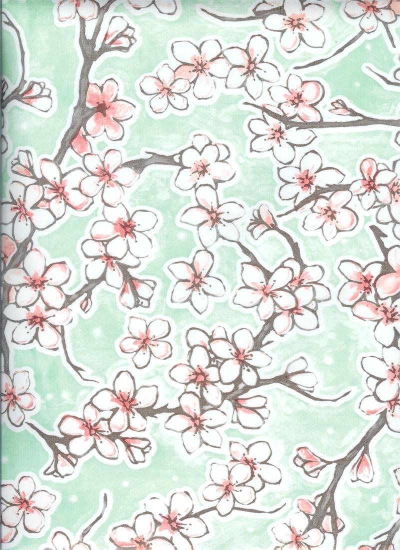 Fuji on Aqua Blue Oil Cloth. Sold by the Yard. Oilcloth yardage named after the iconic Mt. Fuji. Bright and beautiful! It's springtime in Japan year-round with these sakura cherry blossoms in full bloom.