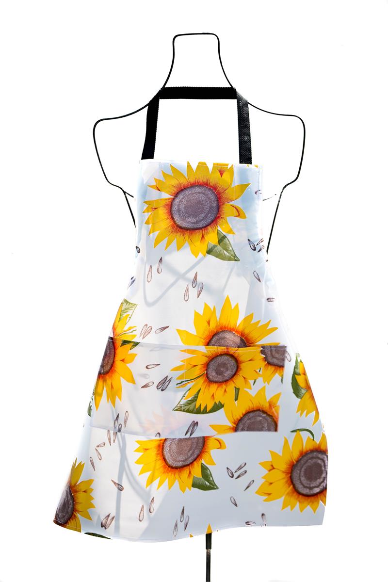 OilCloth International Sunflowers on White Adult Size Bib Apron