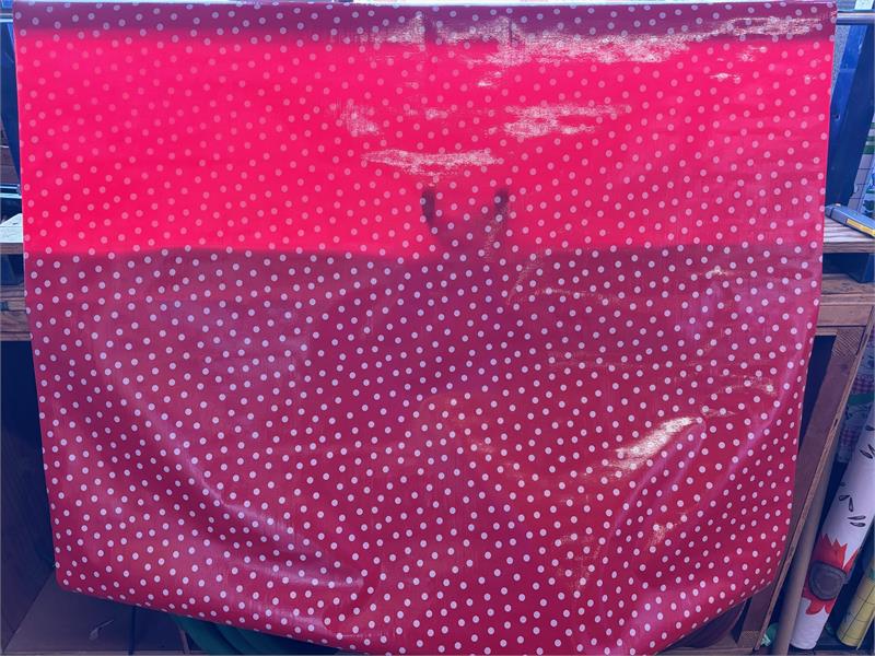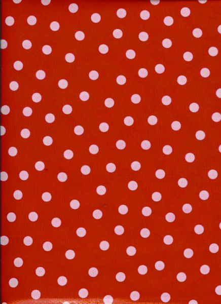 Polka Dots White on Red Oil Cloth, Full BoltOilcloth has been around for over a century and when it comes to making a bold color statement anywhere in your home. Oilcloth is a long-lasting, sturdy product that comes in vibrant colors. The oilcloth of yesteryear was resin-coated vinyl and the finish sometimes cracked or flaked. The new version is made of hi-tech plastic that won't crack but has the same colorful shine. Oilcloth has a mesh backing, which means it can really hold a stitch. It can be used for anything that needs to be durable and colorful--tablecloths, upholstered dining room chairs, curtains, bibs, lampshades, tissue boxes, outdoor chairs, etc. Your only limited by your imagination! Oil Cloth measures 48" wide & a full bolt equals 12 continuous yards (36 feet) Don't see the pattern or color you want? Please let us know and we will order it for you!Download a sewing pattern with complete instructions that you can print out at home to make an adorable bib with these oil cloth materials courtesy of Oilcloth.com. Click Here