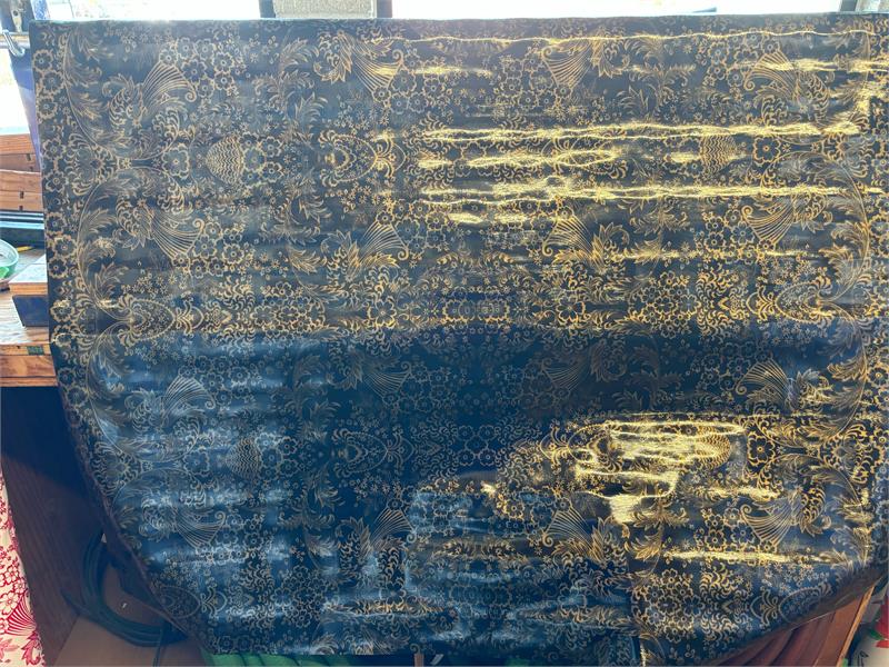 Paradise Lace Gold on Black Oil Cloth, YardageOilcloth has been around for over a century and when it comes to making a bold color statement anywhere in your home. Oilcloth is a long-lasting, sturdy product that comes in vibrant colors. The oilcloth of yesteryear was resin-coated vinyl and the finish sometimes cracked or flaked. The new version is made of hi-tech plastic that won't crack but has the same colorful shine. Oilcloth has a mesh backing, which means it can really hold a stitch. It can be used for anything that needs to be durable and colorful--tablecloths, upholstered dining room chairs, curtains, bibs, lampshades, tissue boxes, outdoor chairs, etc. Your only limited by your imagination! Oil Cloth measures 48" wide & a full bolt equals 12 continuous yards (36 feet) Don't see the pattern or color you want? Please let us know and we will order it for you!