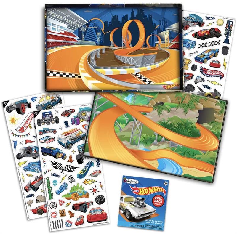 Create fun scenes over and over with re-stickable Hot Wheels shapes!