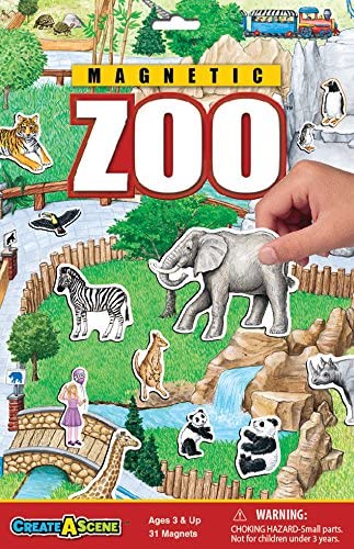 Playmonster Create-A-Scene Magnetic Zoo Playset ToyAre you ready for some new scenery? Has the same old view got you down? Go on your own adventure with Create-A-Scene! Spend hours exploring new places and discovering new things! Use your imagination to craft a fantastical journey or just a simple everyday activity. The choice is yours when you play with Create-A-Scene! Create-A-Scene playsets feature large magnetic play-boards that fold in half for easy storage. And, with a clear, resilient coating, cleanup is a breeze! Kids will love the fun, while parents love the mess-free quiet playtime! Children will exercise their imaginations for hours with this magnetic playset that encourages storytelling, promote problem-solving skills, and build skills in sequencing. The 18" x 14" play board folds in half and is sealed with a clear, resilient coating to make cleanup easier. The vinyl, waterproof magnetic playing pieces provide extra hold. -