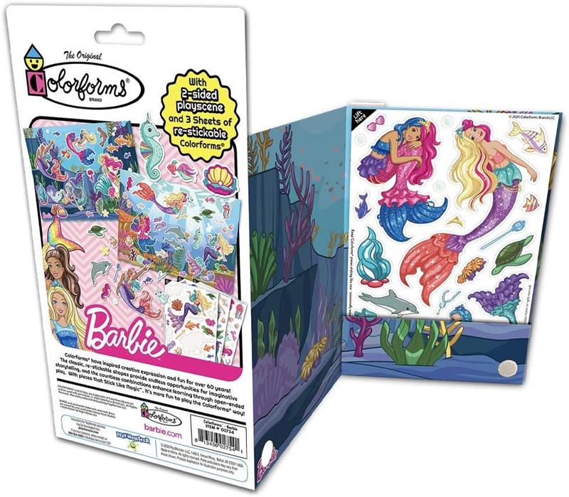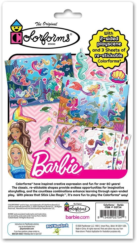 PlayMonster Retro Classic Colorforms Travel Playset – Barbie Mermaids Re-Stickable #2754