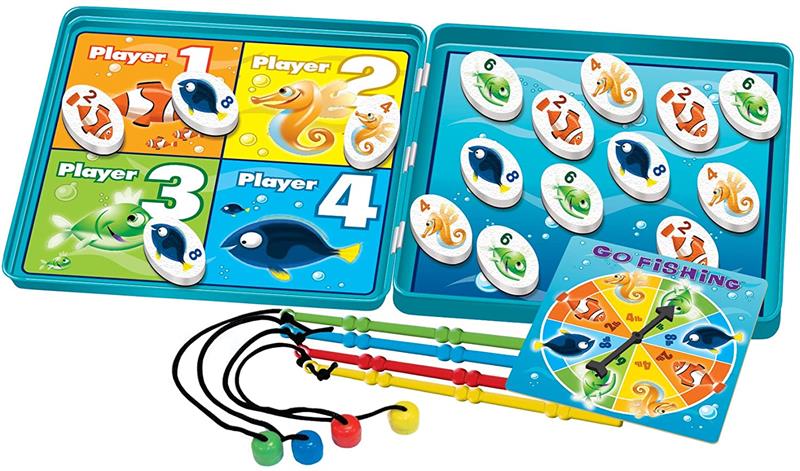 Includes 16 Magnetic Fish, 4 Magnetic Fishing Poles, Spinner, Magnetic Game Board, Rules