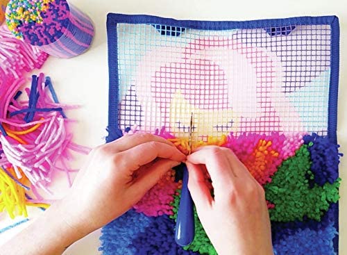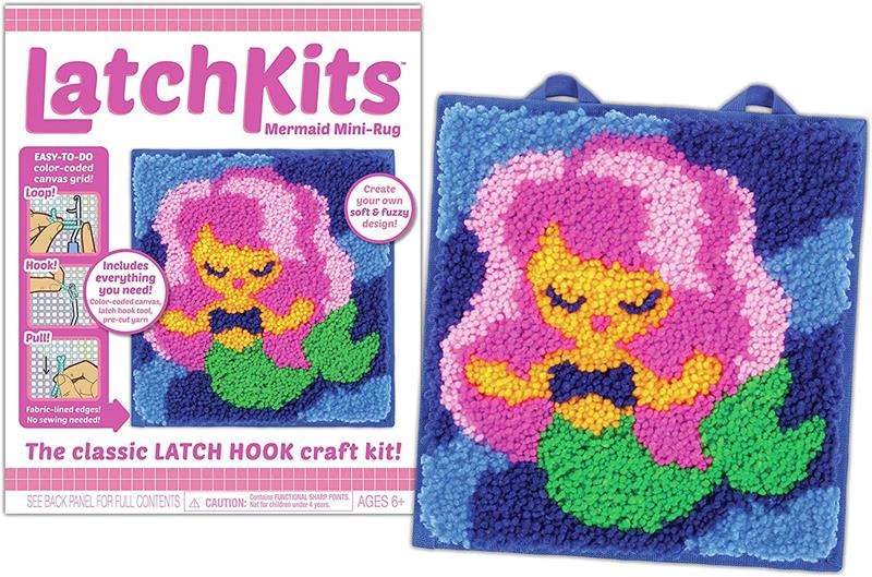 Latch Kits are a fun, easy-to-learn activity—just loop, hook, and pull! Includes everything to make your own mini masterpiece: One latch hook craft tool, five bundles of pre-cut yarn pieces, one color-coded canvas, and one illustrated instruction guide.