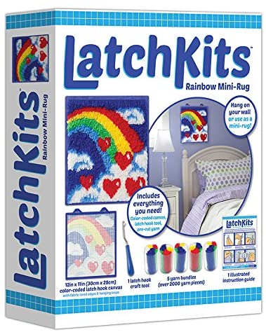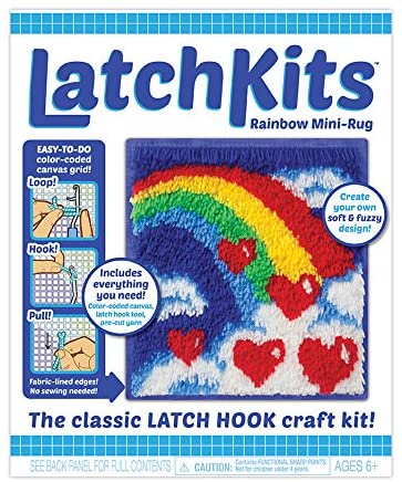 Latch Kits are a fun, easy-to-learn activity—just loop, hook, and pull! Includes everything to make your own mini masterpiece: One latch hook craft tool, five bundles of pre-cut yarn pieces, one color-coded canvas, and one illustrated instruction guide.
