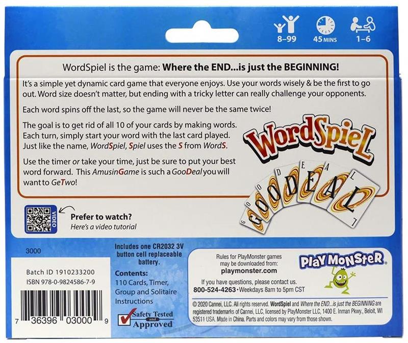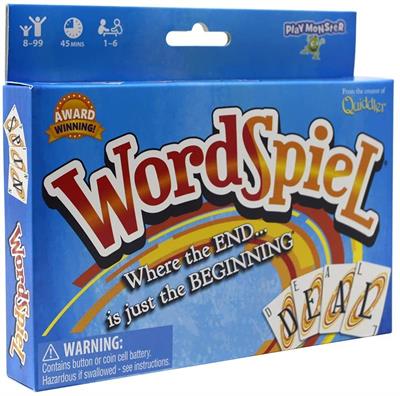 Be the first to get rid of all 10 of your cards by making words. Each turn, simply start your word with the last card played. Just like the name, WordSpiel. Spiel uses the S from WordS. It’s the word game…Where the END…is just the BEGINNING! Word size doesn’t matter, but ending with a tricky letter can really challenge your opponents. You can use the timer or take your time, just be sure to put your best word forward! Your friends and family will thank you for spreading the WORD about WordSpiel!