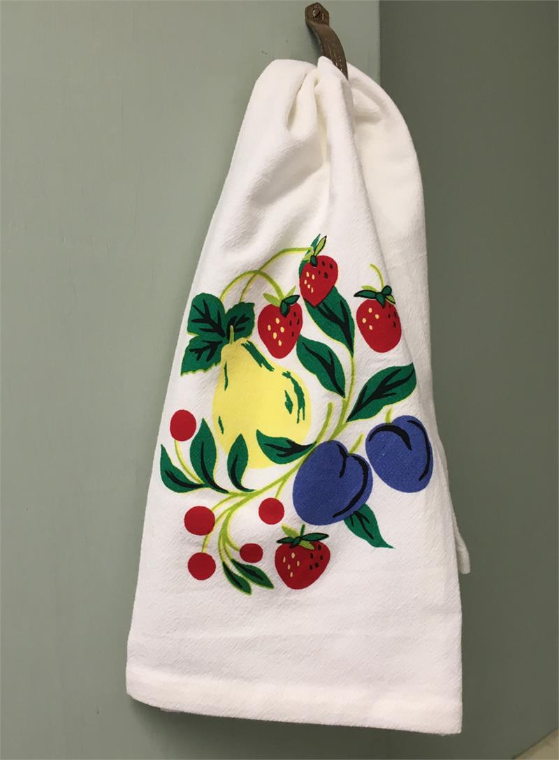 Red and White Kitchen Retro Fruit Group Flour Sack Towel 100% Cotton