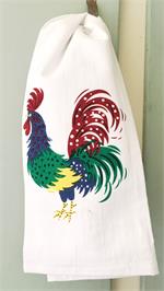 Outspoken little hen and her proud husband! This vintage print of a country hen and her colorful rooster mate are sure to brighten up any country kitchen. 100% cotton flour sack towel measures 17" x 24". Brand New with Tags.